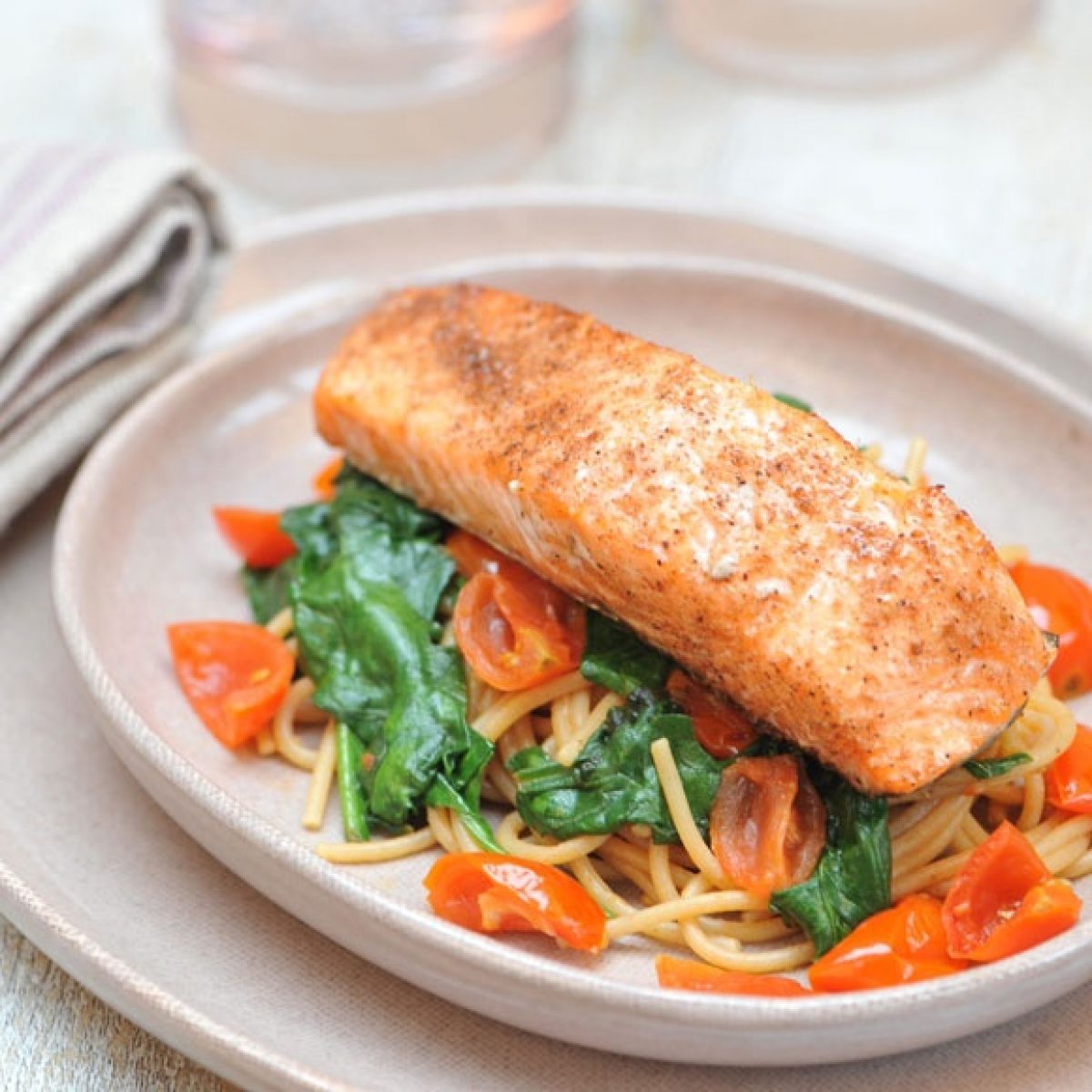 Cajun Salmon With Spicy Tomato Pasta World Cancer Research Fund